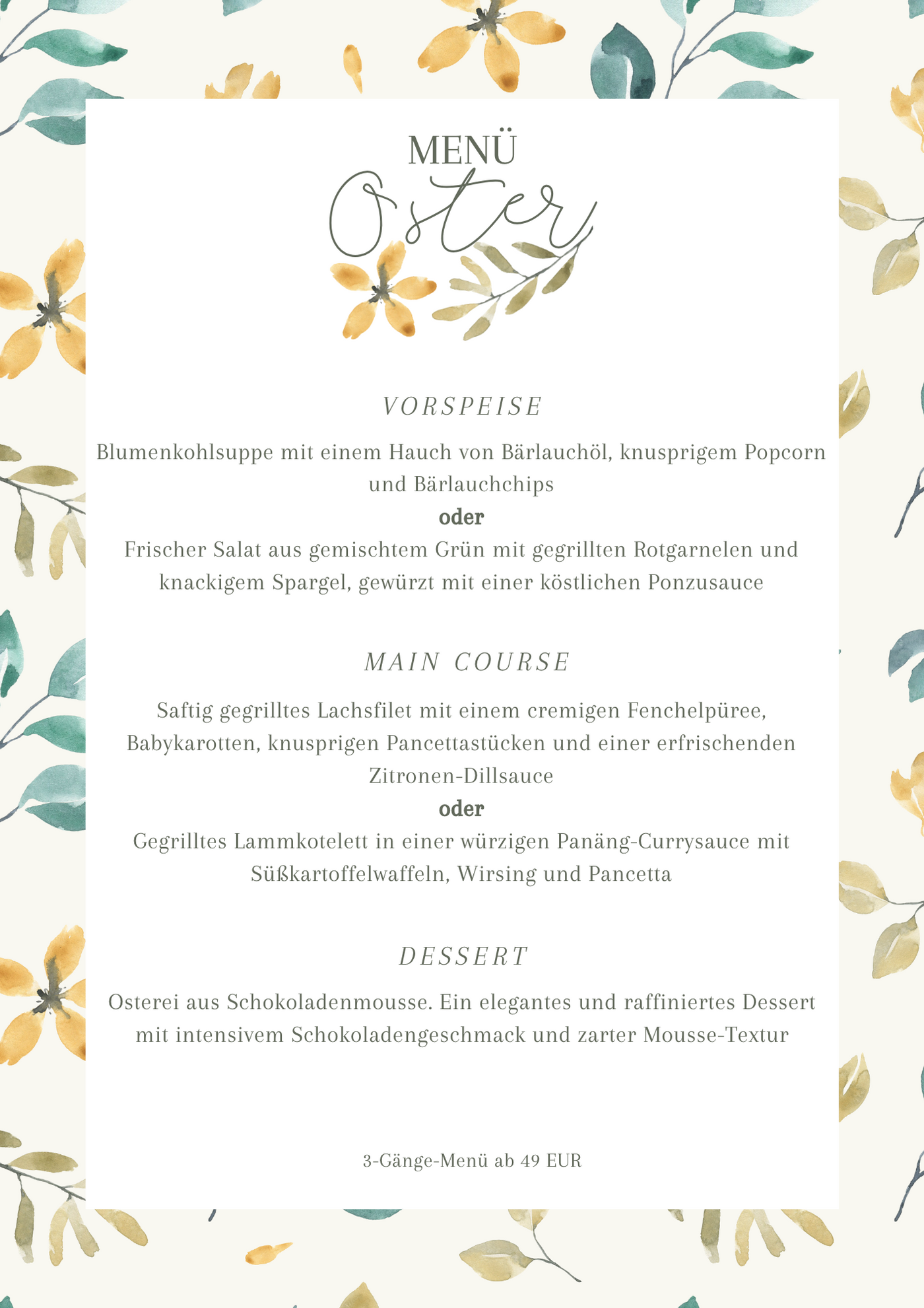 ab 3-Gang ab 44 EUR inkl. Welcome Drink